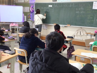 切り上げや切り下げを使って見積もりをし、計算をする学習に取り組んでいます。問題文を読んで、どのようにしたら計算しやすくなるか考えて立式しています。