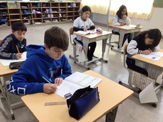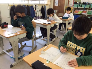 分数の計算問題や、表を使った問題に取り組んでいます。