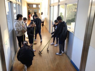 今日は入学説明会があり、新1年生の保護者が来校します。きれいな西保見小を見てもらおうと、朝から5年生が自主的に会場周りの掃除を行なっていました。みんなのために進んで行動する姿を見て、とても頼もしく感じました。