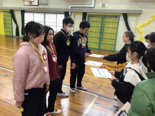 みんなで楽しんだ後は、プレゼントタイム。ふれあい班の仲間から心のこもったプレゼントが6年生に渡されました。みんな、すてきな笑顔です。