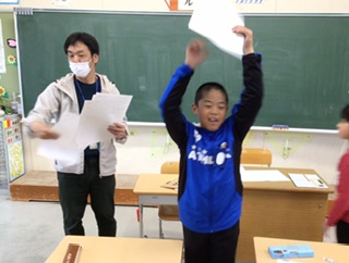算数でテストが返されました。良い点数でありますように…と願っている子も。みんなドキドキしながら受け取っています。