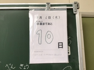 教室の前に掲げてある卒業までのカウントダウンが、あと10日となりました。西保見小で学習できる日も残りわずかになりました。みんな、頑張っています。
