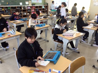 今日は、国語で10年後、20歳の自分に向けての手紙を書きました。また、社会科で調べた色々な県や市、町の特色を上手に画用紙に配置し、立体として見られる作品にしました。たくさんのことにチャレンジしてきたこの教室で過ごすのも、あと少しです。