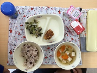 お赤飯と卒業お祝いケーキ付きです。美味しくいただきました。