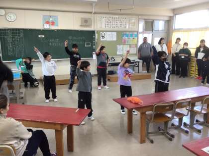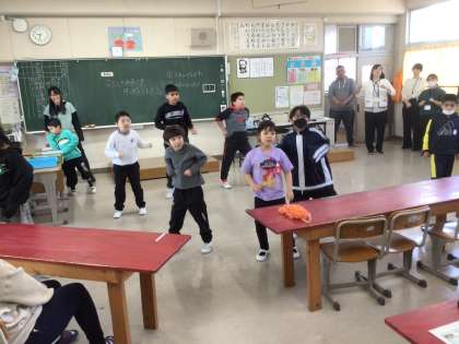 4・5・6組は、学級活動の様子を参観してもらいました。今年がんばることを発表したり、朝の会で練習しているダンスを披露したりしました