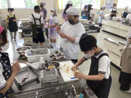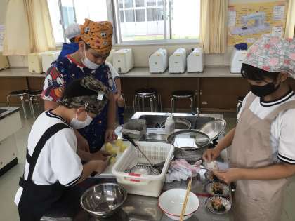 5年生が調理実習で、ほうれん草のおひたしを作ったり、ジャガイモをゆでたりしました。自分たちでつくった2つの料理の味はどうだったかな?