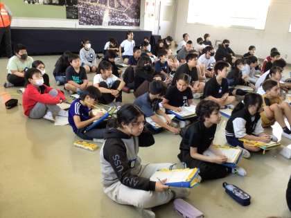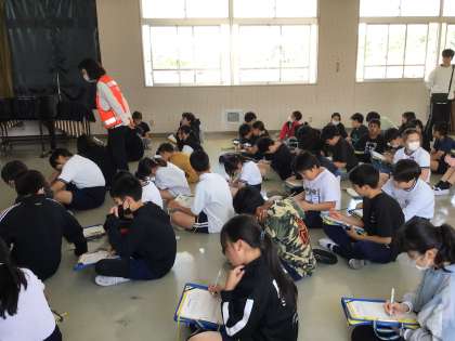 豊田警察署の方から薬物乱用防止についてのお話を聞きました。みんな真剣に聞いて、薬物の恐ろしさを学びました。