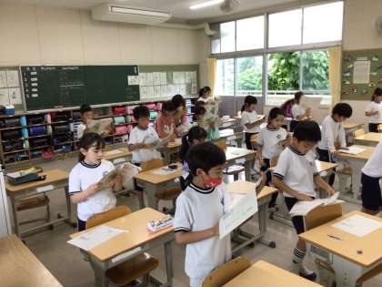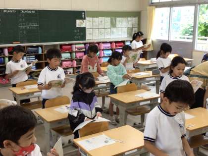 2年生の国語の授業の様子です。「なまえをみてちょうだい」というお話の音読練習をしました。みんな、大きな声で練習できていました
