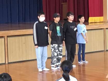 交流会の最後に班ごとに感想を伝え合いました。その後、全体の場でも代表で4人の児童が感想を伝えました。みんな、しっかりと自分の感想を話せていて、とても素晴らしかったです。