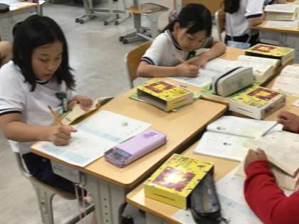 4年生の国語の様子です。漢字辞典を使い、いろいろな漢字の部首、総画、音読み、訓読み等を調べました。一つでも多くの漢字を調べられるように活動しました。