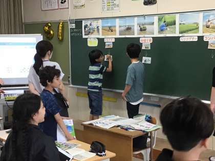 5年生の社会の授業の様子です。お米ができるまでの過程について自分の予想と同じかどうかを確認しながら学びました。その後、米づくりの昔と今の違いについても学習しました。