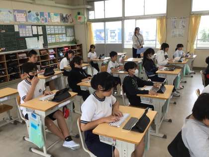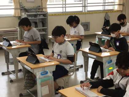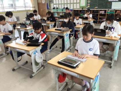 6年生のタイピングの授業の様子です。ブラインドタッチの基本となることを学び、スムーズにタイピングできるように練習をしました。