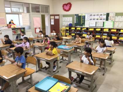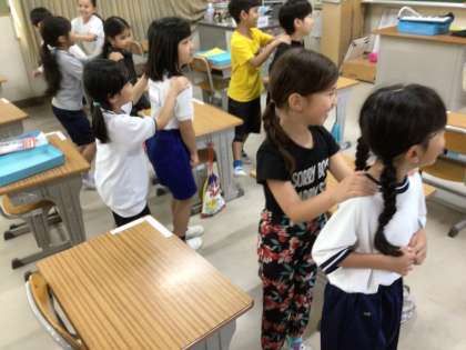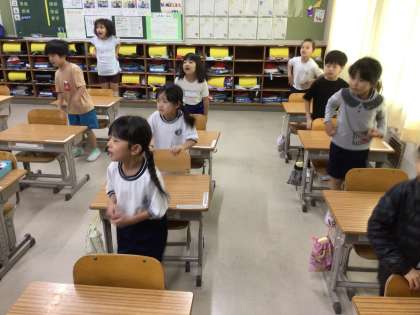 1年生の音楽の授業の様子です。「しろくまのジェンカ」を歌ったり、曲に合わせて動いたりしました。みんな、楽しく活動できました。