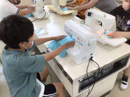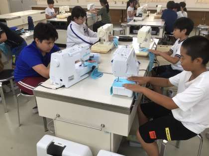 家庭科の授業で、初めてミシンを使いました。自動で縫えることに感動しながら、早く使いこなせるように頑張りました。