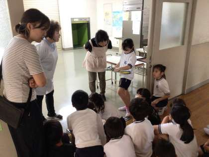 2年生の学活の授業の様子です。配膳室で働いている方々にいろいろな質問をして答えてもらいました。質問の仕方を学んだので、これからは各自で気になったことを質問に行く予定です。