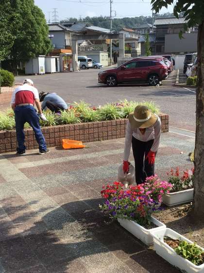 本日、朝から30度を超えるような暑さの中でしたが、花ボランティアの方々が花壇周辺をきれいにしてくださいました。いつも本当にありがとうございます。