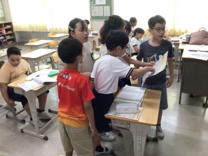 4年生の社会の授業の様子です。資源やごみの分別について学習しています。身近なものについて、どのように分別していくとよいのかを学びました。