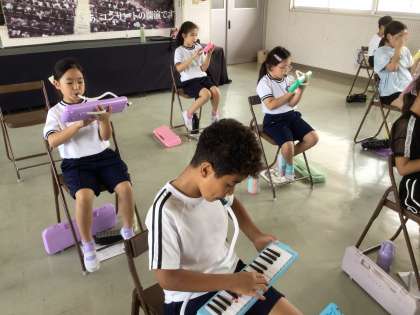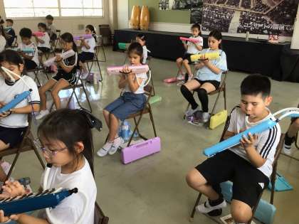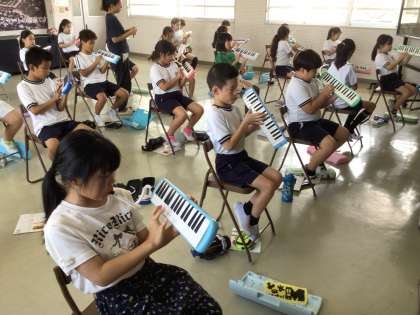 3年生の音楽の授業の様子です。先週の音楽の時間で聴いたときよりもピアニカを上手に吹くことができるようになっていました。