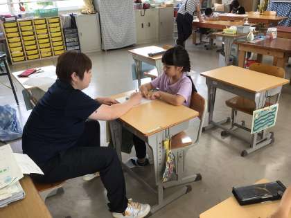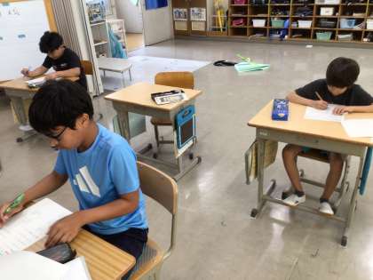 4・5・6組の算数の授業の様子です。個に応じたプリントで学習を進めています。みんな、一生懸命計算問題に取り組みました。