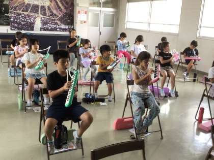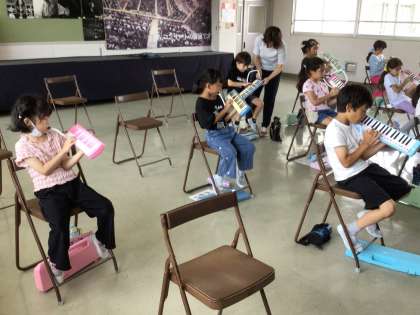 2年生の音楽の授業の様子です。「かえるのうた」をピアニカで吹きました。みんな、運指もしっかりとできていました。