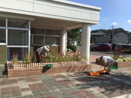 本日も朝から30度に迫る暑さの中でしたが、花ボランティアの方々が花壇周辺をきれいにしてくださいました。いつも本当にありがとうございます。