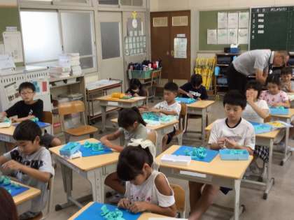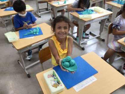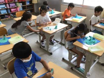 2年生の図工の授業の様子です。夏休みの思い出を粘土で表現しました。細部までこだわった作品を作ることができていました。