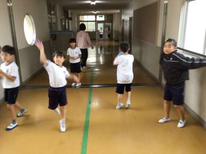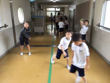 紙飛行機を作って飛ばしました。変わった形の紙飛行機でしたが、みんな上手に飛ばしていました。