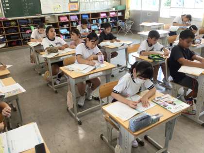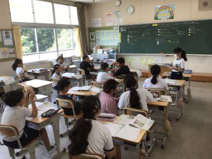 4年2組の道徳の授業の様子です。「雨のバスていりゅう所で」という資料をもとに、ルールを守ることの大切さについて考えました。