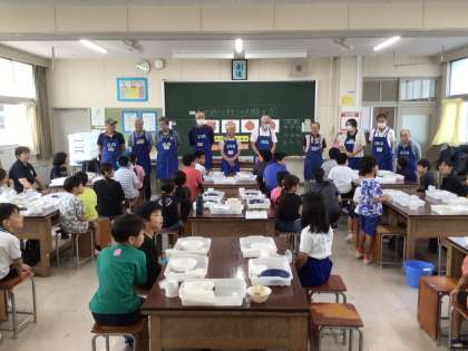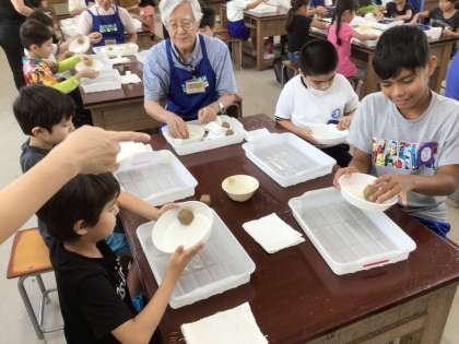 ものづくりサポートセンターから多くの方に来ていただき、1年生と4組・5組・6組の子たちが土団子づくりに挑戦しました。