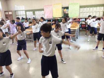 3年生の体育の授業の様子です。動画を見ながら、ダンスの練習をしました。みんなで動きを揃えられるように、これからがんばっていきます。