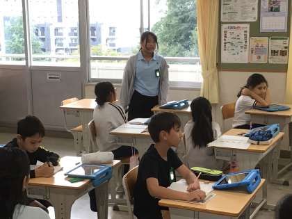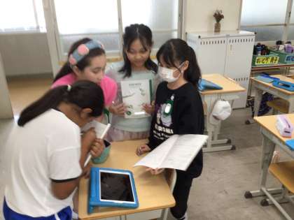 4年生の社会の様子です。ごみを減らすことのよさについて、みんなで話し合ったり、そこで出てきた疑問を発表したりしました。