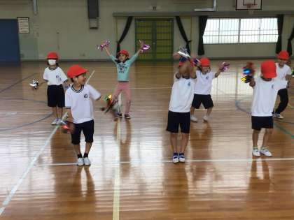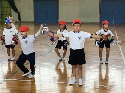 1年生の体育の様子です。前半はダンスの練習、後半はドッジボールを行いました。みんな、楽しみながら取り組みました。