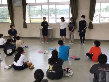 6年生の修学旅行に向けた集会の様子です。各実行委員会の思いを聞いたり、先生からの連絡事項について確認したりしました。