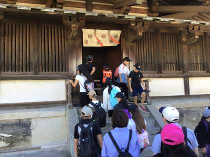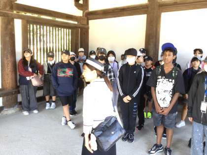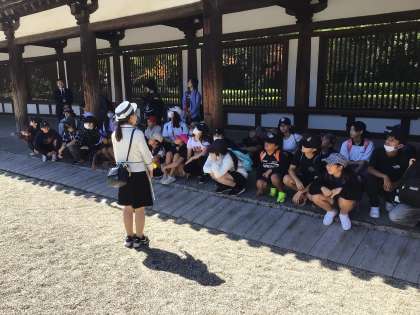 法隆寺の見学をしました。みんな、バスガイドさんの話をしっかりと聞いて見学できました。