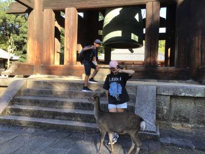 東大寺で大仏の大きさに驚いた後、奈良公園を探検しました。