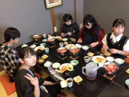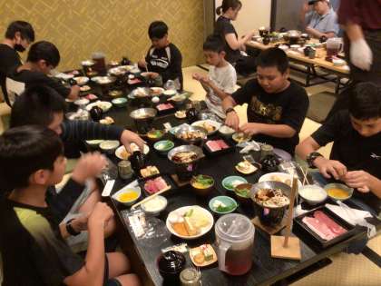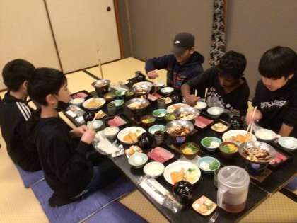 旅館に着き、すぐに夕食の時間でした。みんな、しっかり食べていました。