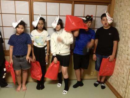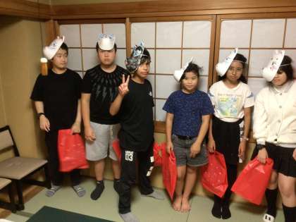 体験活動のお面づくりの様子です。