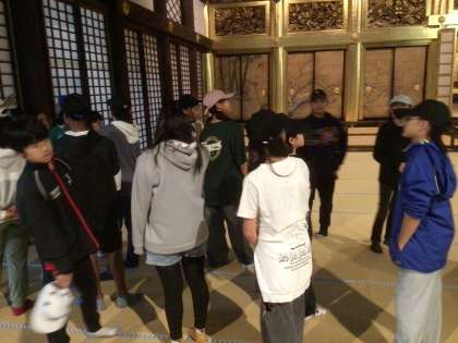 早朝、5時半から希望者のみ旅館の目の前にある西本願寺の見学をしました。読経が始まる前の厳かな雰囲気を感じることができました。