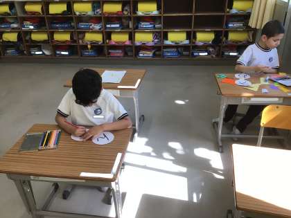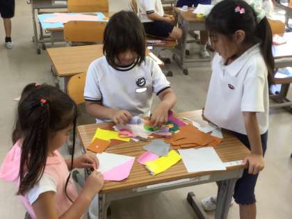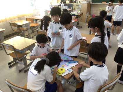 1年生の生活科の様子です。月曜日に行うお楽しみ会に向けた準備をしています。自分たちで飾りつけなどを工夫してつくっています。