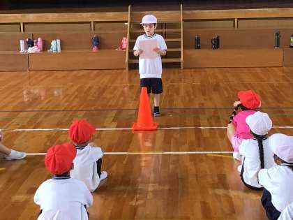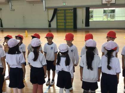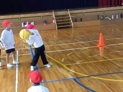 1年生のお楽しみ会の様子です。自分たちでチームを決めたり、ルールを決めたりしてドッヂボールを楽しみました。