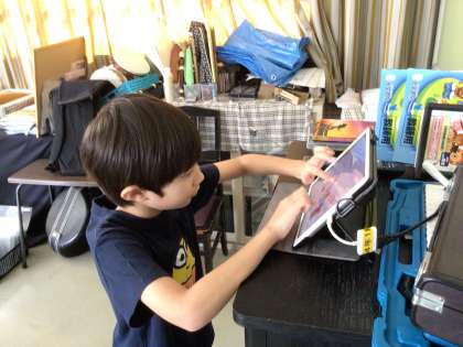 4・5・6組の音楽の様子です。バーチャルドラムを活用し、一人一人音を出してみました。一つずつ楽器の音を出したり、複数の音を一度に出したりしました。