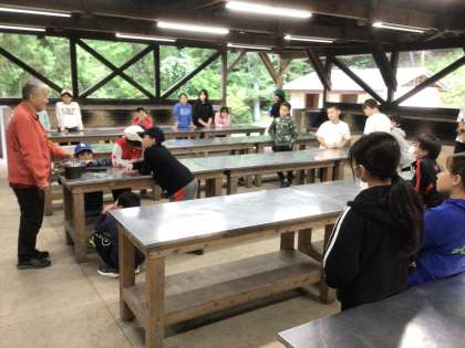 夕食の準備が始まります。はんごう炊飯の説明を所員の方から受けました。上手に炊けるように頑張ります。
