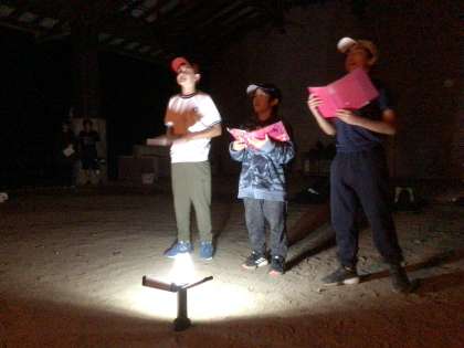 キャンプファイヤーの様子です。ダンスやクイズ等で大いに盛り上がりました。