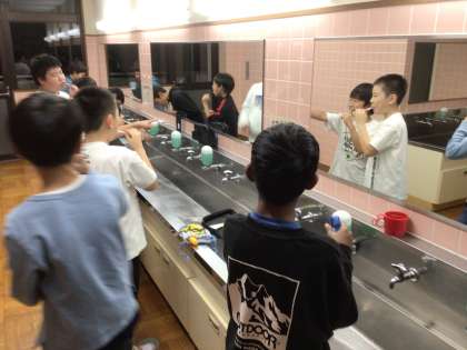 キャンプファイヤーも終わり、お風呂や就寝準備等に移っています。みんな、元気に過ごしています。