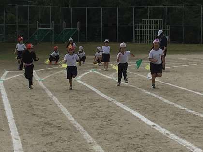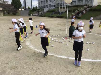 2年生の体育の様子です。スポーツデーに向けて、徒競走、ダンス、玉入れなどの練習をしています。一生懸命練習に取り組んでいます。