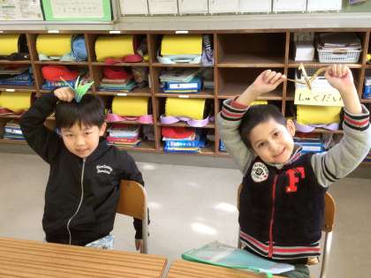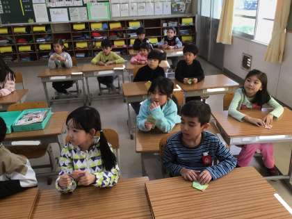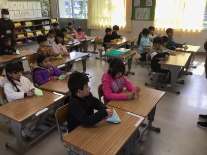 1年生の生活科の様子です。折り鶴に挑戦しました。折り方の説明をよく聞いてがんばりました。