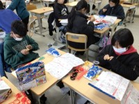 5年生の学活の様子です。スポーツデーの招待状を家族に向けて作成しました。当日、運動場のどのあたりで活躍するのかを分かりやすく示した招待状を作成しました。