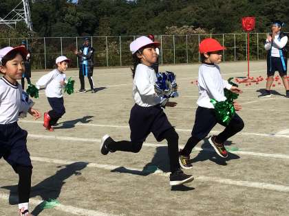 1年生の様子です。ダンス、徒競走、玉入れを頑張りました。
