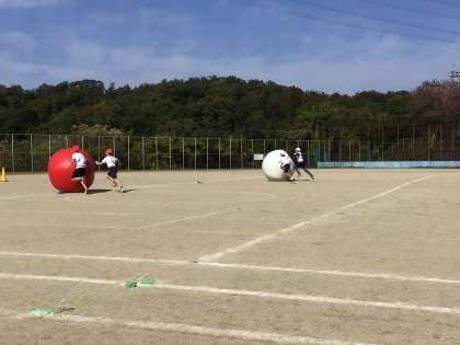 5年生の様子です。徒競走、ダンス、大玉送りを頑張りました。