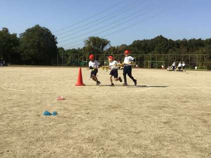 3年生は、台風の目に挑戦しました。どちらのチームも一生懸命協力して走りました。
